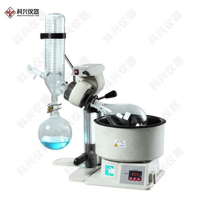 旋轉(zhuǎn)蒸發(fā)儀的根本原理就是減壓蒸餾,也就是在減壓情況下,當(dāng)溶劑蒸餾時,蒸餾燒瓶在接連滾動。蒸餾燒瓶是一個帶有標(biāo)準(zhǔn)磨口接口的茄形或圓底燒瓶,經(jīng)過一高度回流蛇形冷凝管與減壓泵相連,回流冷凝管另一開口與帶有磨口的接納燒瓶相連,用于接納被蒸騰的有機(jī)溶劑。在冷凝管與減壓泵之間有一三通活塞,當(dāng)體系與大氣相通時,能夠?qū)⒄麴s燒瓶,接液燒瓶取下,轉(zhuǎn)移溶劑,當(dāng)體系與減壓泵相通時,則體系應(yīng)處于減壓狀況。使用時,應(yīng)先減壓,再開動電動機(jī)滾動蒸餾燒瓶,結(jié)束時,應(yīng)先停機(jī),再通氣,以防蒸餾燒瓶在滾動中掉落。作為蒸餾的熱源,常配有相應(yīng)的恒溫水槽。經(jīng)過電子操控,使燒瓶在最適合速度下,恒速旋轉(zhuǎn)以增大蒸騰面積。經(jīng)過真空泵使蒸騰燒瓶處于負(fù)壓狀況。蒸騰燒瓶在旋轉(zhuǎn)同時置于水浴鍋中恒溫加熱,瓶內(nèi)溶液在負(fù)壓下在旋轉(zhuǎn)燒瓶內(nèi)進(jìn)行加熱擴(kuò)散蒸騰。旋轉(zhuǎn)蒸騰器體系能夠密封減壓至 400~600毫米汞柱;用加熱浴加熱蒸餾瓶中的溶劑,加熱溫度可接近該溶劑的沸點(diǎn);同時還可進(jìn)行旋轉(zhuǎn),速度為50~160轉(zhuǎn)/分,使溶劑形成薄膜,增大蒸騰面積。此外,在高效冷卻器作用下,可將熱蒸氣迅速液化,加速蒸騰速率。