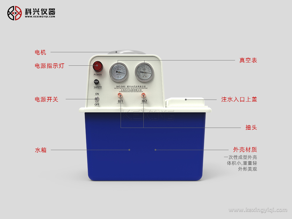 該泵是在循環水多用真空泵的基礎上,根據實驗室面積較小這一特點,參照日本臺式泵,一次性成型外殼,縮小體積改進而成,具有體積小,重量輕,外形美觀等特點。